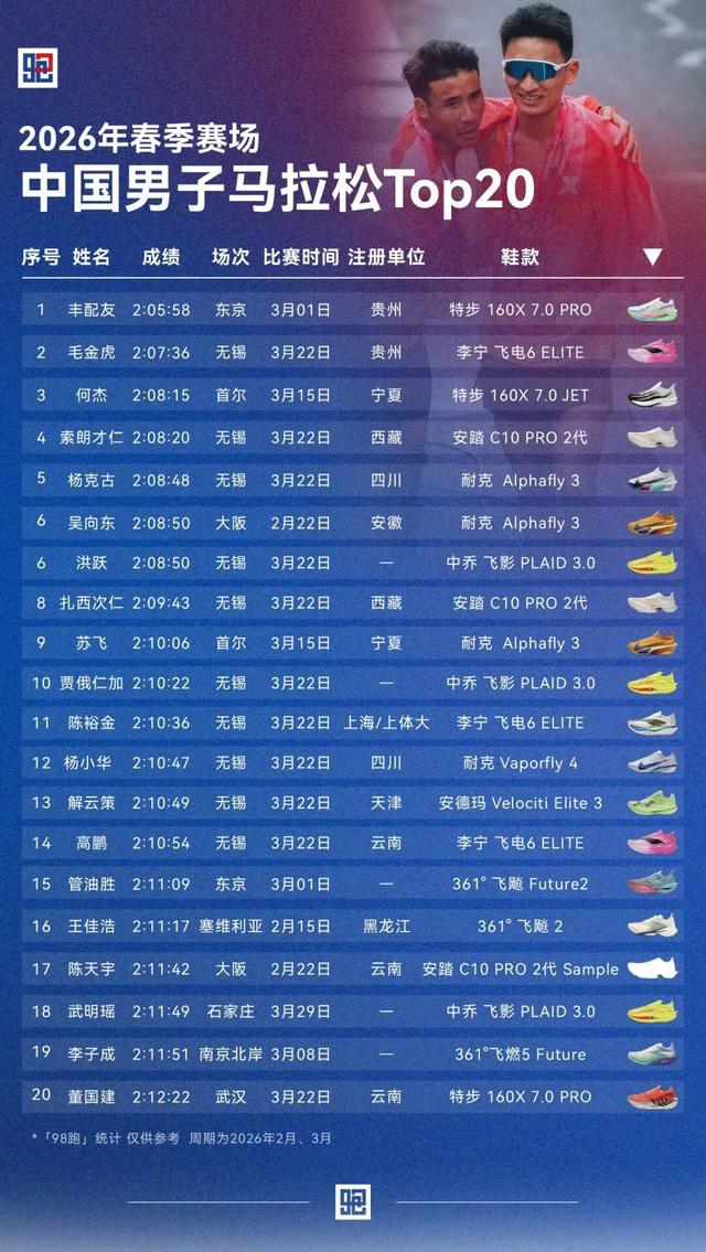 丰配友东京跑出的2:05:58里程碑式胜利不必赘言,将全国纪录提升了59秒,让中国男子马拉松正式叩开了“205时代”的大门。